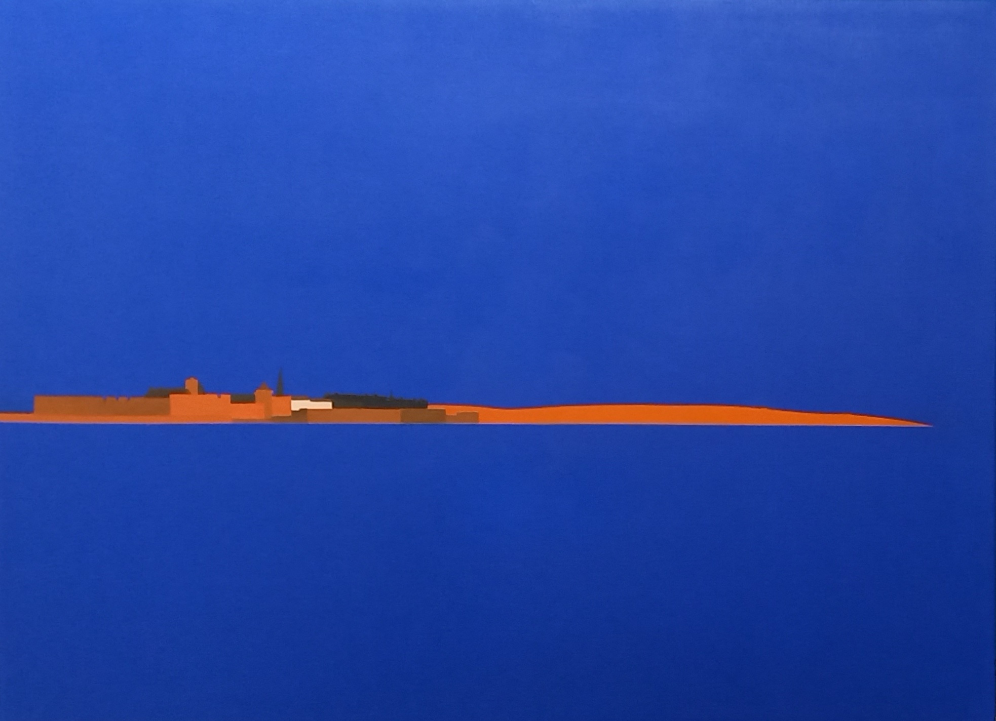 La composition et la couleur restent les dominantes de mon travail, une vision plus géométrique m’entraine vers l’emploi d’aplats de couleurs vives dans un style épuré.